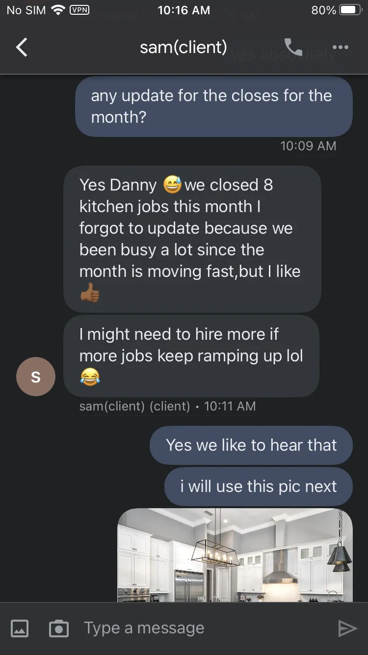 Antonio- added 8 bathrooms and 4 kitchen projects in 60 days